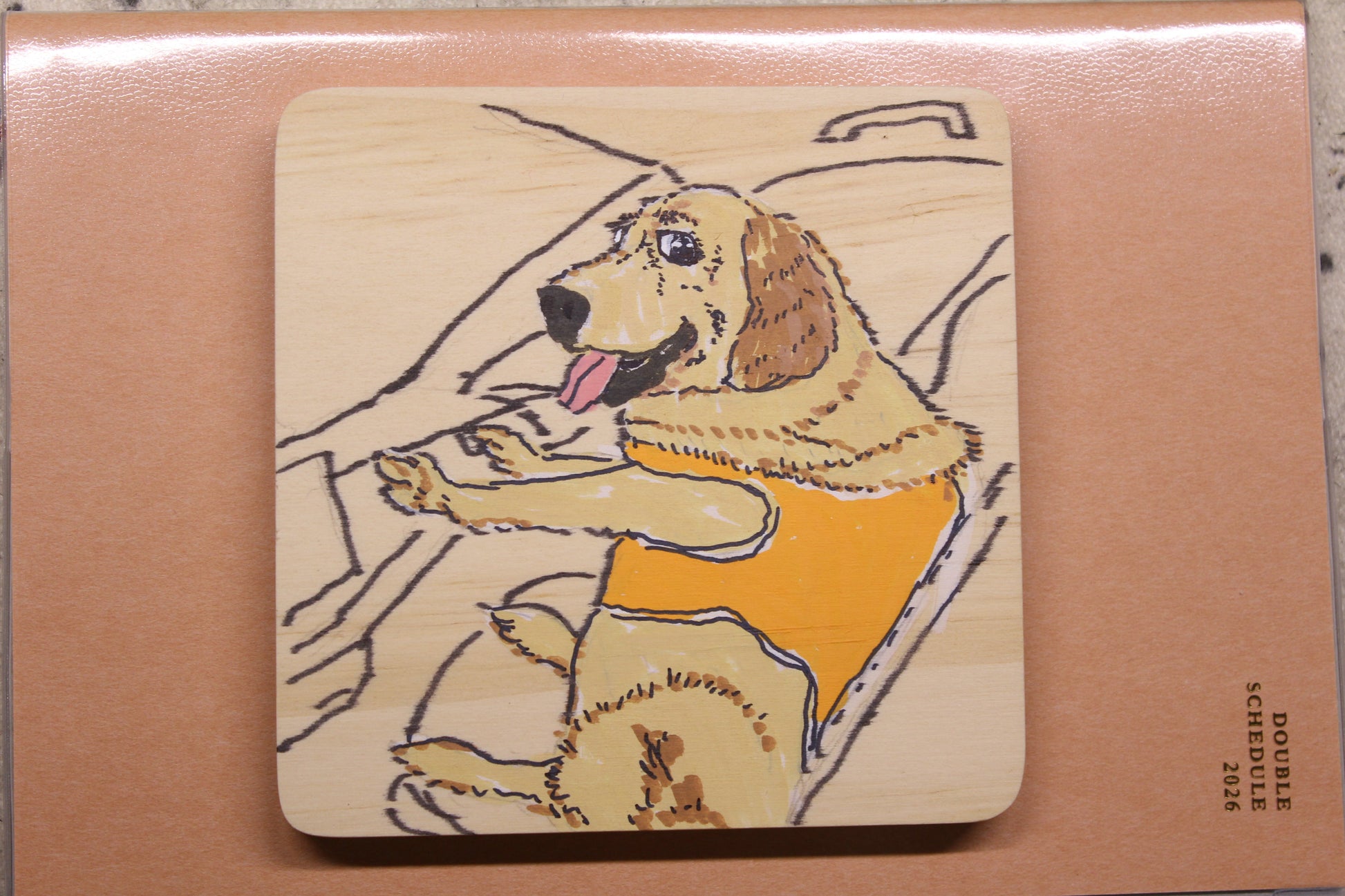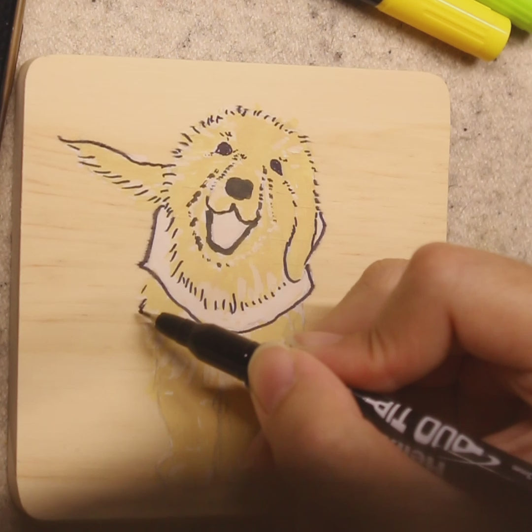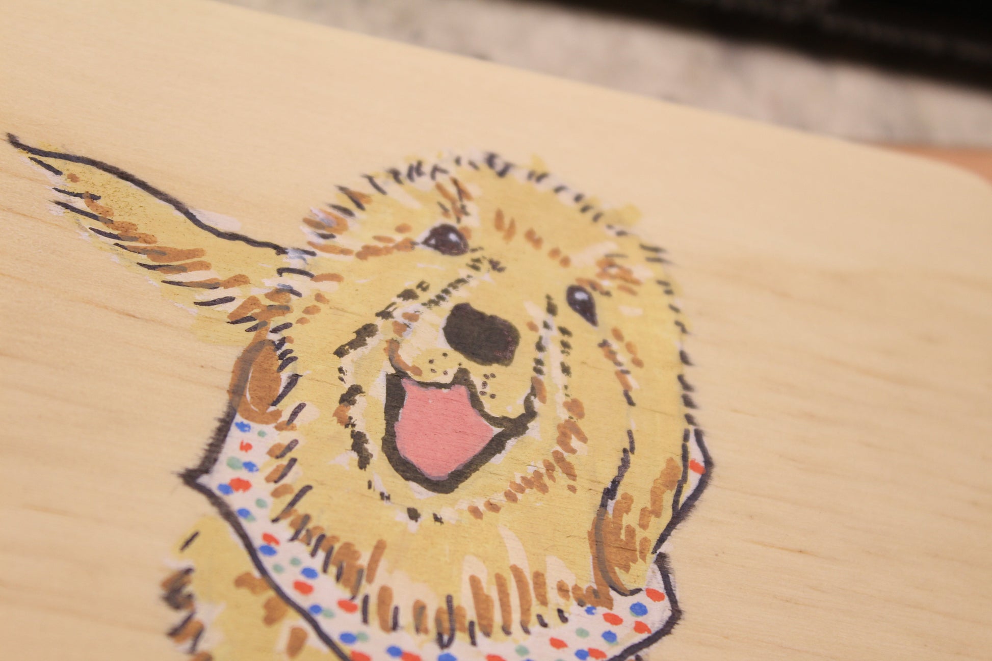 Square Wooden Coaster with Mini Hand-drawn Pawtrait on