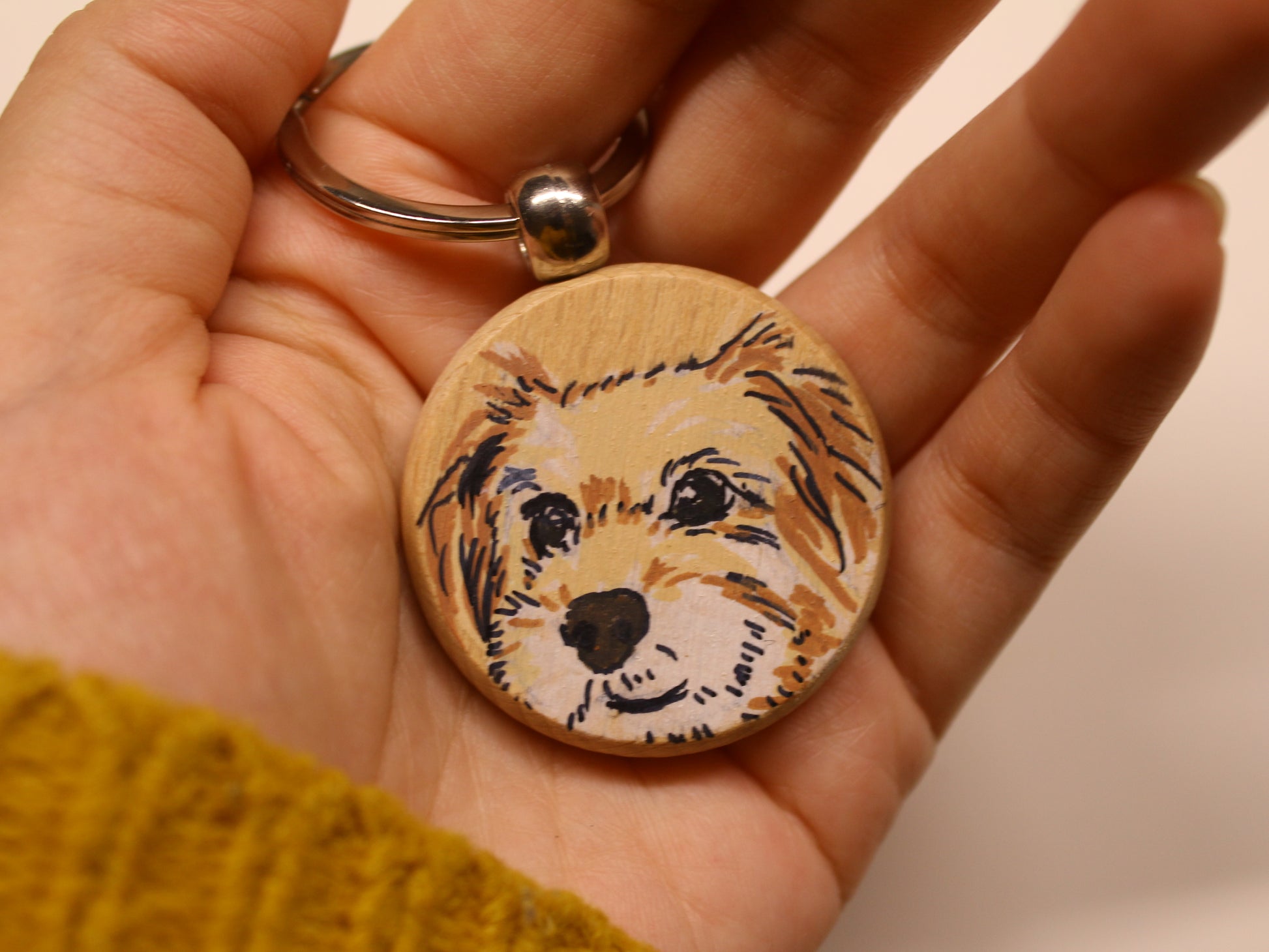 Wooden Circular Keyring with Mini Pawtrait on